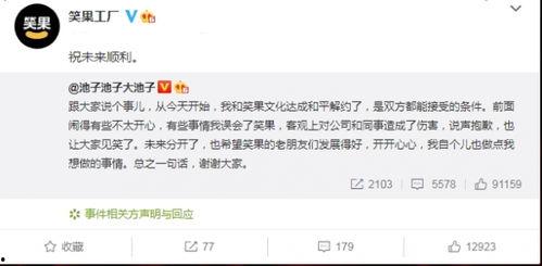 最近池子在微博上可是炸开了锅呢!这位曾经的喜剧演员,如今在娱乐圈的风头可是一点也不减。这不,他又来了一次大爆料,让粉丝们兴奋不已。今天,就让我带你一起深入挖掘池子微博的最新动态,看看他都说了些什么吧!